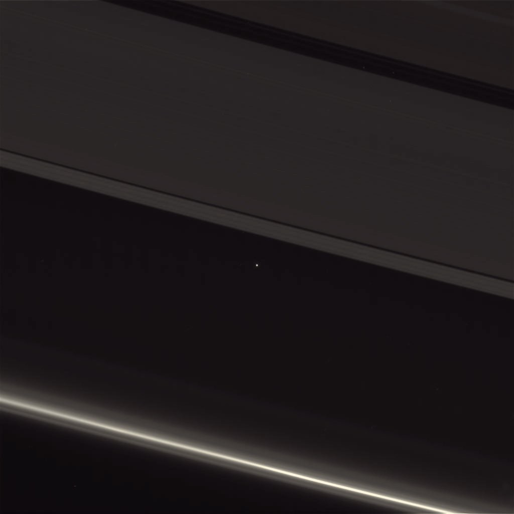 That bright star is actually Earth, seen between Saturn’s A and F rings by #Cassini on April 13, 2017…889.6 million miles away.